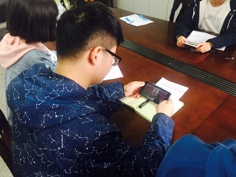 法学支部的同学们一起聚集在党员活动室,利用自己的手机同步收看了党员教育纪录片《永远在路上》第一集《人心向背》,通过手机学习了党的十八大以来中央“四个全面”的重要精神和“从严治党”的坚定决心。视频观看结束后,学生党员们一起通过自己的观看来清谈观后感,通过讨论和相对宽松的自媒体环境来真实地表达自己的学习感悟。