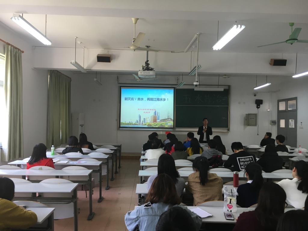 与建工学院团委共同邀请到了嘉兴市环境保护联合会副秘书长、南湖学院化工系环境工程专业王成贤老师作了题为《剿灭劣五类水,再现江南水乡》的主题讲座。 啪啪啦