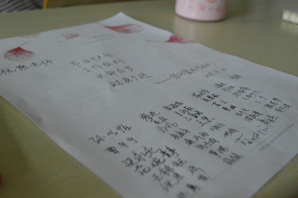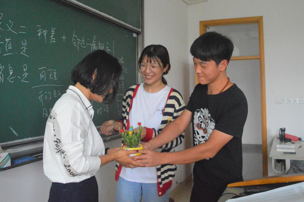 本次活动分为向任教教师献礼和向学工办老师送祝福两个部分。首先是汉语言173的同学们在班长的引领下,给任课老师写了承寄感恩的明信片,并由班长代表全班同学向任课老师献上绿植,送上祝福。其次,同样也是在班长的带领下,其他同学向学工办的老师也献上了自己的一份心意,表达了祝福。这活动的过程中,无论是学生还是教师,都深有感触。
