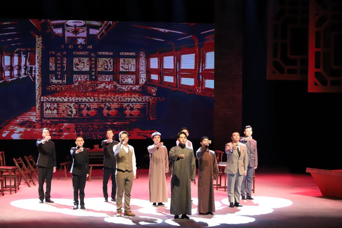 演出结束,演员们集中谢幕,观众们的掌声热烈,对于演员们的精彩演出给予了极大的肯定。据悉,这已经是话剧《初心》的第十场演出,演员们精湛的演技再次获得认可,也再一次展示了嘉兴学院原创红色话剧《初心》的时代魅力。