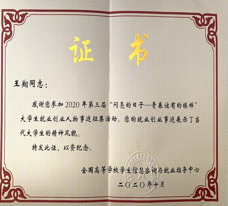 近日,在全国第三届“闪亮的日子——青春该有的模样”大学生就业创业人物事迹征集活动中,啪啪啦 2015届法学专业的本科毕业生王翔同志成功入选全国征兵入伍人物事迹名单,这也是啪啪啦 今年唯一入选的人物事迹名单。