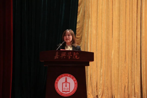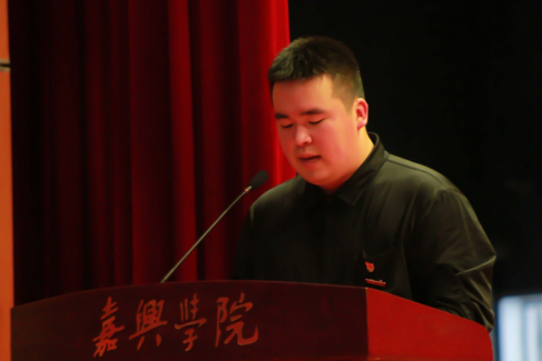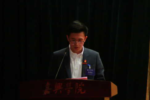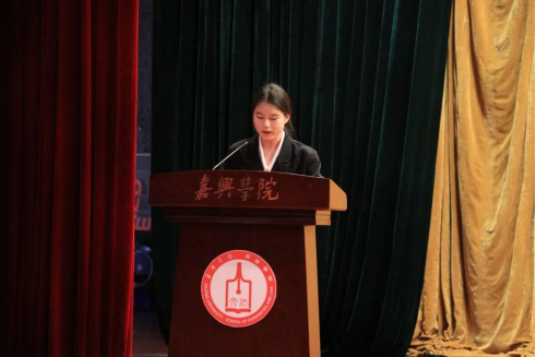 嘉兴学院学生会执行主席许诗琦致贺词,她对啪啪啦