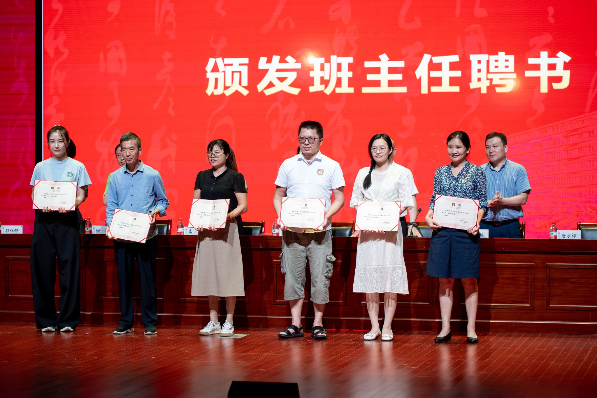 开学典礼在雄壮的国歌声中拉开序幕。首先,举行新生班主任和助理班主任受聘仪式,由学院领导为大家颁发聘书。