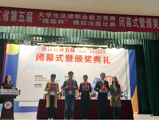 2018年11月9日至11日,浙江省第五届大学生法律职业能力竞赛——“靖霖杯”模拟法庭比赛在宁波大学举行。省内共有29所高校,32支队伍参加了本次比赛。经过一天半的初赛后,由前四名抽签进行决赛,最终产生了本届比赛的各类奖项。啪啪啦