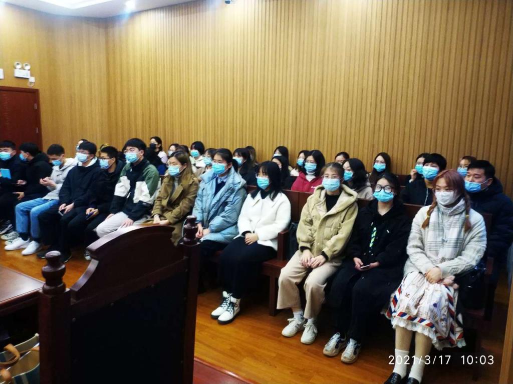 上午8点40分,参加活动的三十多位法学系学生入座一号审判庭,旁听了一起合同纠纷案件的庭审。一个多小时的旁听,学生们对民事案件的开庭程序有了更加深刻地了解。
