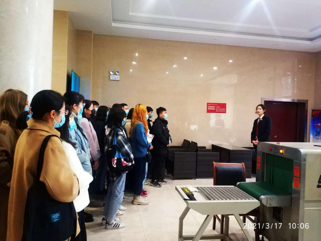 旁听结束后,法官助理陆婕婕给学生们介绍了长水法庭的设置历史、现有人员构成、管辖范围以及年办案量等基本情况,并带领同学们参观了长水法庭的互联网法庭。听了陆法官的介绍,学生们纷纷感叹长水法庭“麻雀虽小,五脏俱全”,也对科技发展给法院工作带来的变化有了全新的认识。
