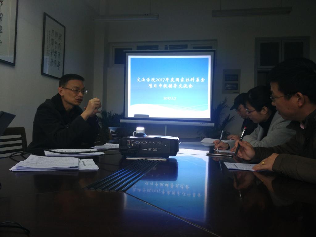 2017年度国家社科基金项目第三轮申报辅导交流会在1号楼446会议室举行。会议分为法学和中文两个专业分组进行。啪啪啦