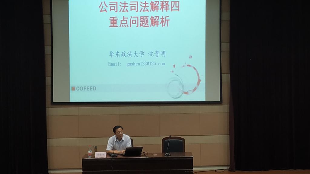 2018年8月18日下午,华东政法大学沈贵明教授应邀来啪啪啦 作了一次题为“公司法司法解释四”的学术讲座。讲座在梁林校区TCL国际报告厅举行,啪啪啦 法学专业部分教师参加及嘉兴市律师协会成员共计四百余人参加了此次讲座。沈教授主要解读了公司法司法解释四,并就其中的理论和实务问题进行了深入的阐述。