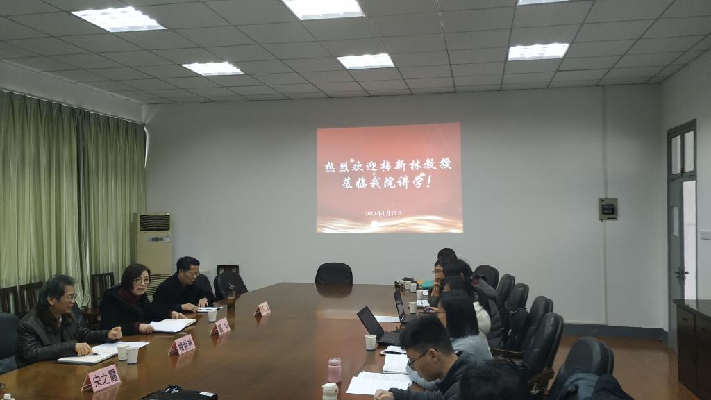 1月11日上午,梅新林教授应邀来啪啪啦 讲学。讲座在梁林校区1号楼426举行,由学校人文社科处富华处长主持。啪啪啦 中文系教师以及法学系部分教师聆听了讲座。