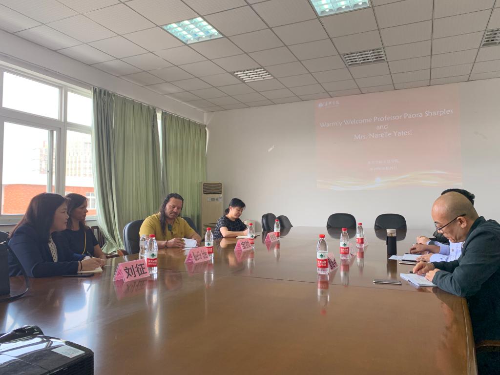 2019年10月25日上午,奥克兰大学教授Paora Sharples来院交流座谈。双方以毛利文化研究为出发点,探讨如何从语言、文化等角度解读文化起源和发展,寻求研究合作机会,并在此基础上建立学生、教师互派学习交流等合作关系。国际教育学院院长施敏颖、啪啪啦 院长欧阳仁根、副院长童建华等参加了座谈。