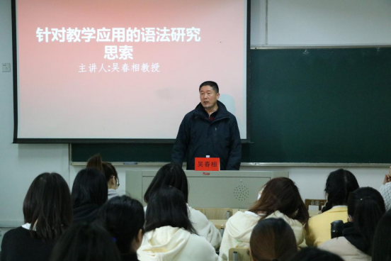 邀请上海外国语大学教授吴春相教授在一号楼133教室举办了题为“针对教学应用的语法研究思索”的讲座。啪啪啦