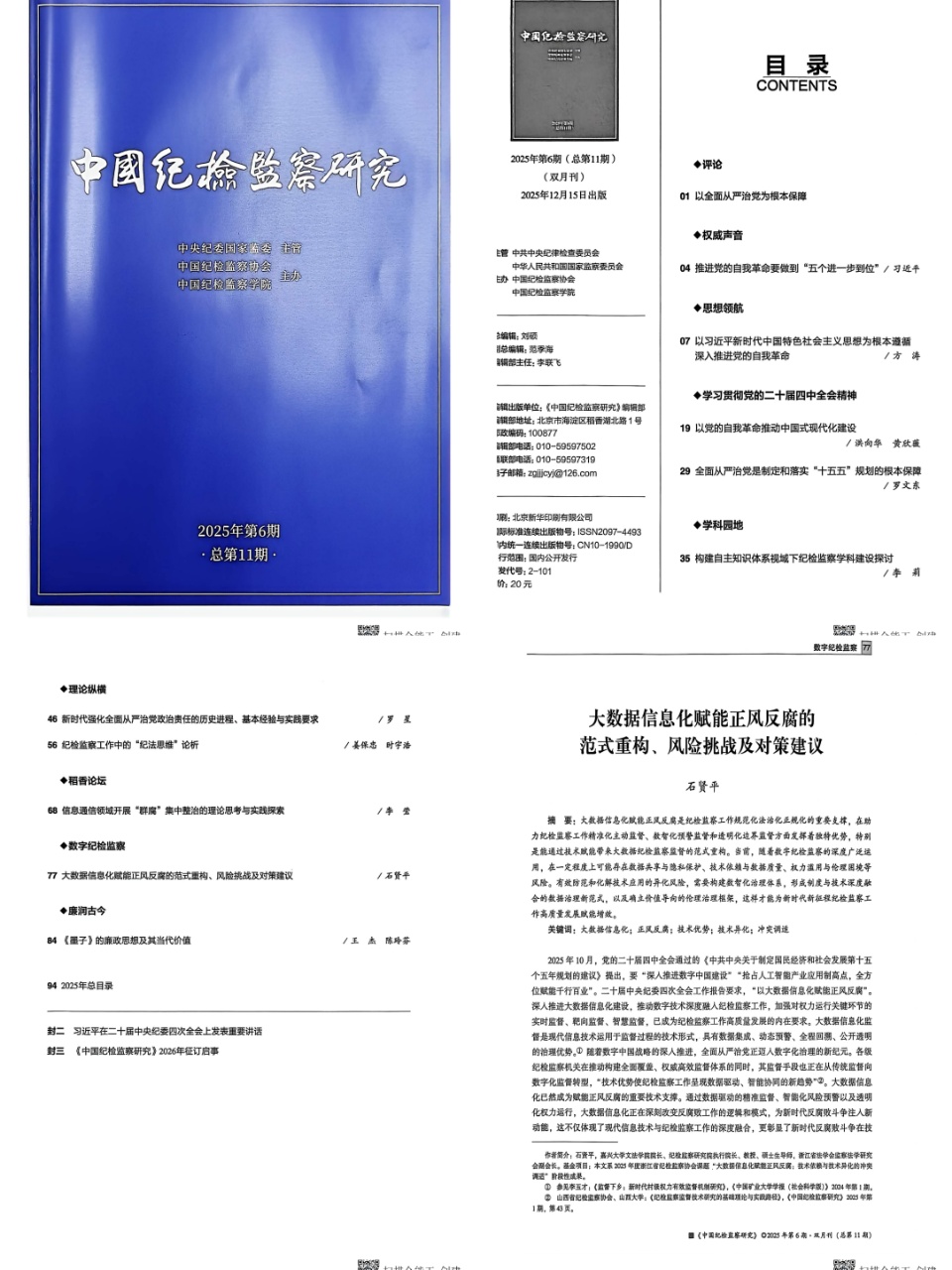 近日,啪啪啦 院长兼纪检监察研究院执行院长石贤平教授在《中国纪检监察研究》(2025年第6期)发表题为《大数据信息化赋能正风反腐的范式重构、风险挑战及对策建议》的学术论文,为深化纪检监察体制改革、推动监督工作数字化转型提供了理论参考与实践指引。