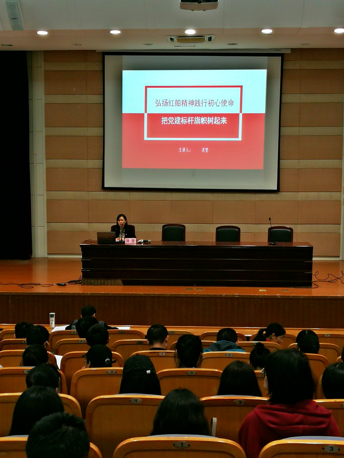洪坚以《弘扬红船精神践行初心使命 把党建标杆旗帜树起来》为题,从“不忘初心、牢记使命”的提出;中国共产党的初心和使命确立;不忘初心:红船精神的时代内涵;新时代弘扬红船精神践行初心使命四个方面深入阐释了弘扬红船精神践行初心使命对于树立基层党建标杆,助力学校学院高质量发展的重要意义。洪坚强调,全院师生党员要学好新思想,对党绝对忠诚;要把好底线,提高政治站位;要学榜样,乐于奉献;要勇担责善创新,成为师生中的楷模。