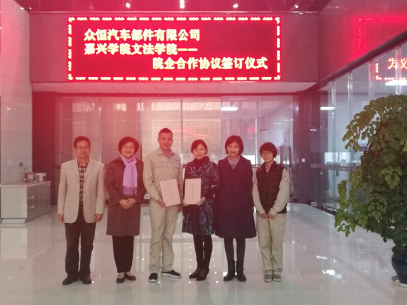 分别与浙江汇信实业有限公司董事长蒋加伟、众恒汽车部件有限公司的董事长蔡国伟签订了院企合作协议,嘉兴市侨留联副主席娄新生、联谊处处长李勇军、啪啪啦