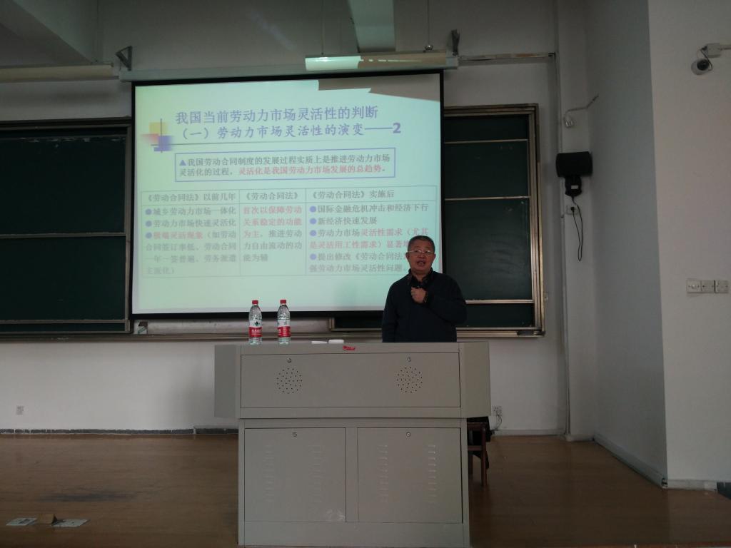 师生作了题为“增强劳动力市场灵活性的劳动法解读与应对”的学术报告。王教授的报告为三大部分内容,首先从历史演变、表现维度、法律相关点等方面谈了对劳动力市场灵活性的理解。其次,从国际比较、实证研究的角度分析了我国劳动力市场灵活性的国际评价表现和实践体现。最后,分析了劳动法增强劳动力市场灵活性的方向,指出取向的选择上应当精准和适当,不应“一边倒”、“一刀切”,要注意劳动法体系内外的分工,注意分类应对、分类调整。在交流环节中,啪啪啦