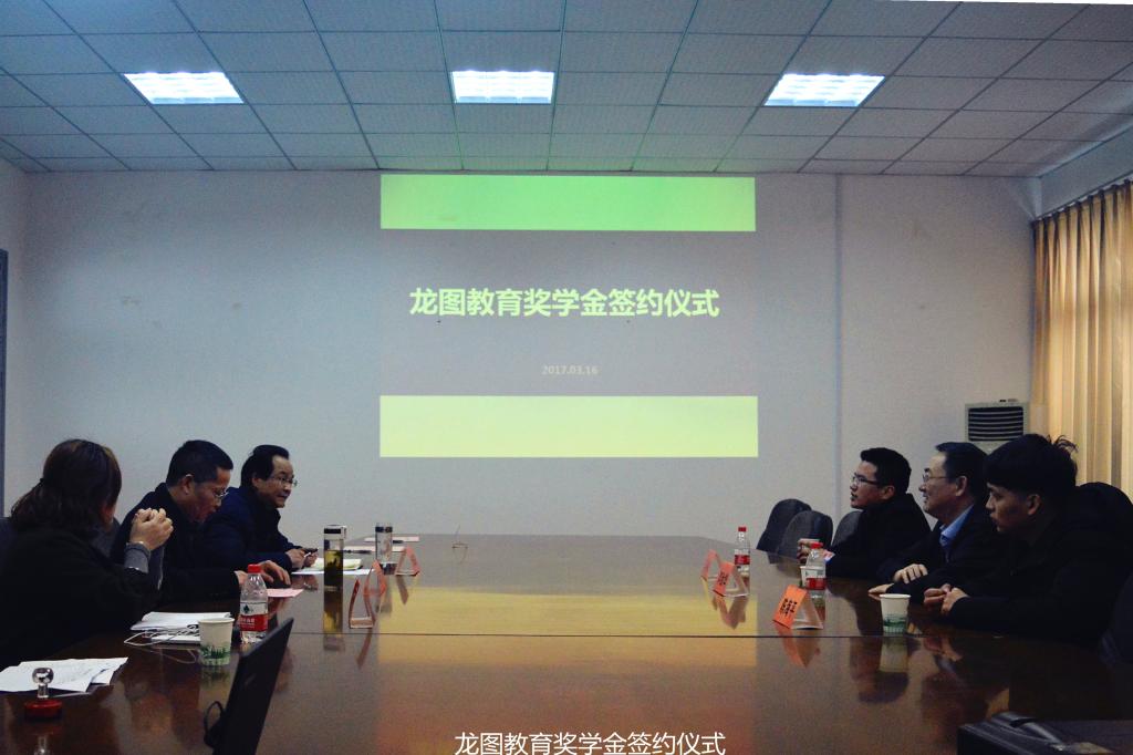 2017年3月16日下午,啪啪啦 与龙图教育集团在梁林校区1号楼426会议室举行了龙图教育奖学金签约仪式。啪啪啦 院长欧阳仁根、龙图集团华东区总监冯伟分别代表双方签订了合作协议。根据协议龙图集团每年给文法学子提供二万五千元的专项奖学金,用于奖励在考研、司考等方面表现突出的学生。同时通过整合资源帮助各位考生完成心中的职业向往。