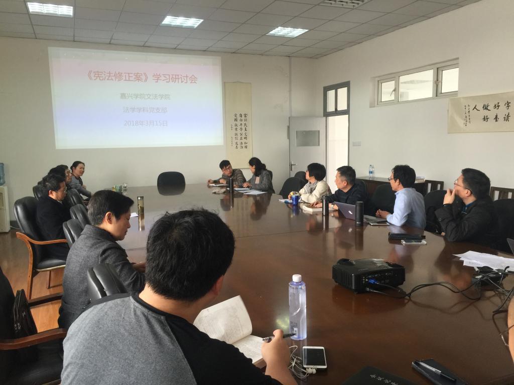 法学学科党支部组织学习了宪法修正案的主要内容、修正背景及重要意义,并一致认为,本次宪法修正案是对我国改革开放四十年特别是近五年来经济社会发展和马克思主义理论中国化成果的确认,反映了全国各族人民的共同意愿,体现了党的主张和人民意志的统一,应该在教学和科研工作体现本次修宪的精神。