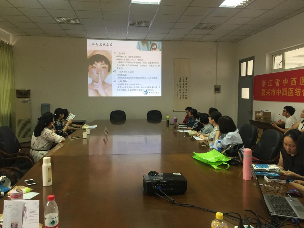 工会邀请嘉兴市中西医结合学会医学美容专业委员会、浙江省中西医结合学会的专家们举办了 “相约美丽,皮肤护理”面对面暨5.25护肤日的公益讲座。本次活动受到全校女教师们的热烈欢迎。