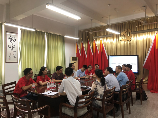 本次座谈会,潘泽谷院长介绍了学校的情况,洪坚书记就课程思政和思政课程创新提出了各自的举措,陈致远副院长就创新创业与红船精神的结合介绍了啪啪啦