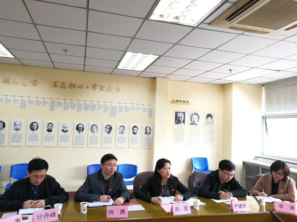 方新军对洪坚一行的到来表示欢迎,同时就王健法学院师资队伍建设、学科建设、科研管理、学生培养及对外交流合作等多方面内容进行了全方位介绍。周国华对王健法学院党建工作总体布局进行了详细介绍,王振华专门就党员教育培训、支部建设等方面内容进行了经验分享。