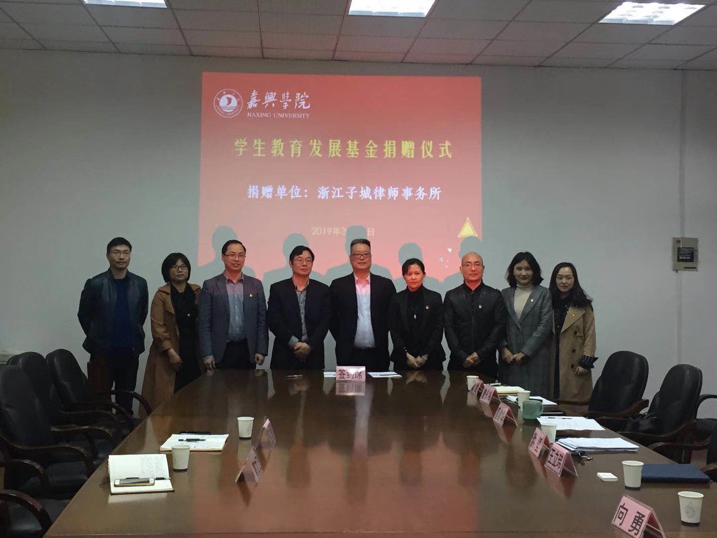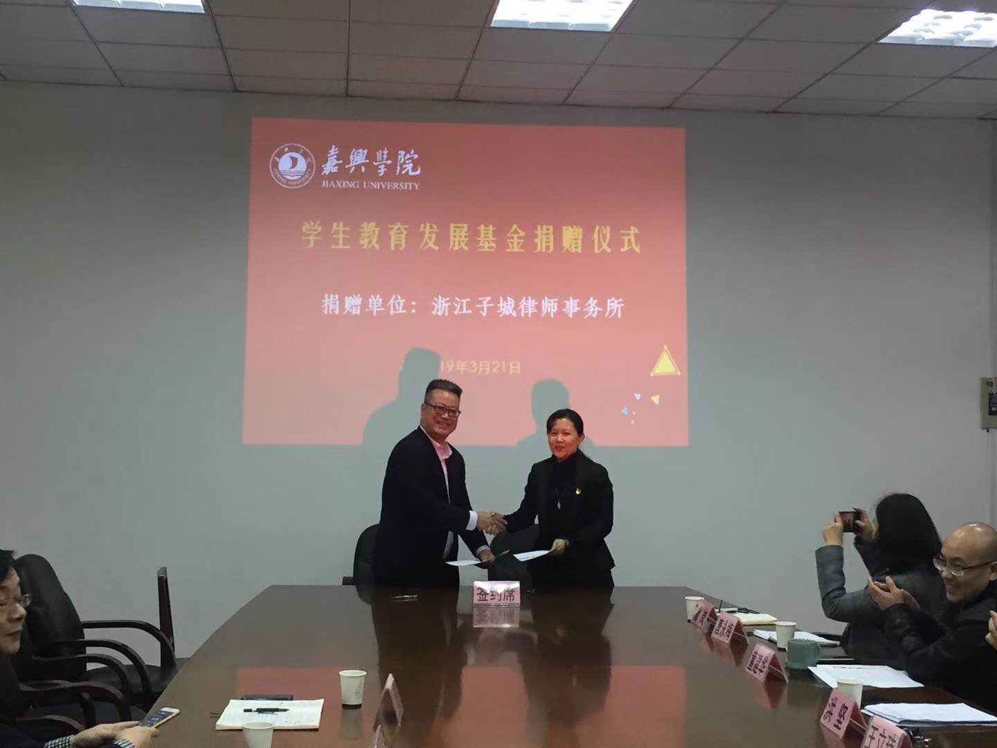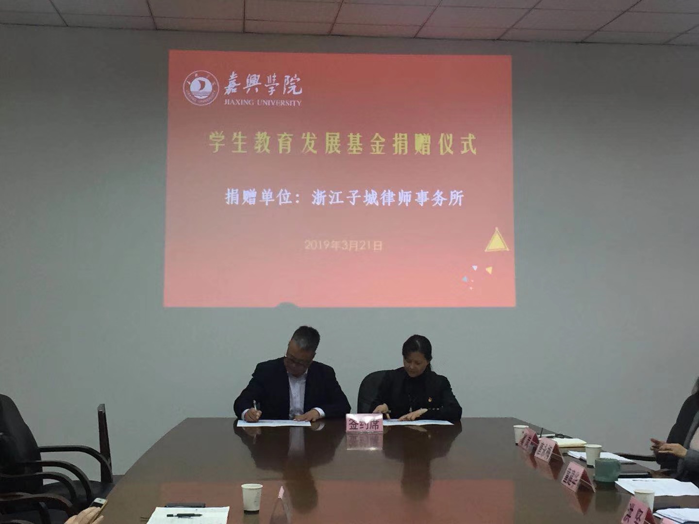会上,双方签署了《浙江子城律师事务所——嘉兴学院教育发展基金会捐赠协议书》。