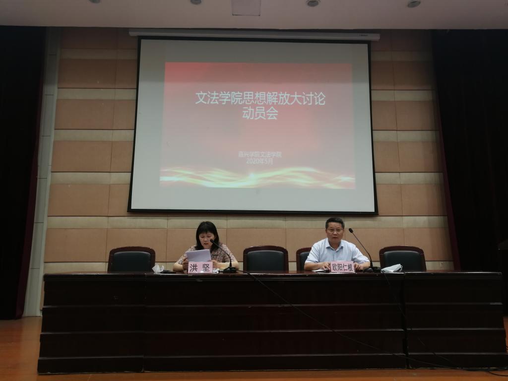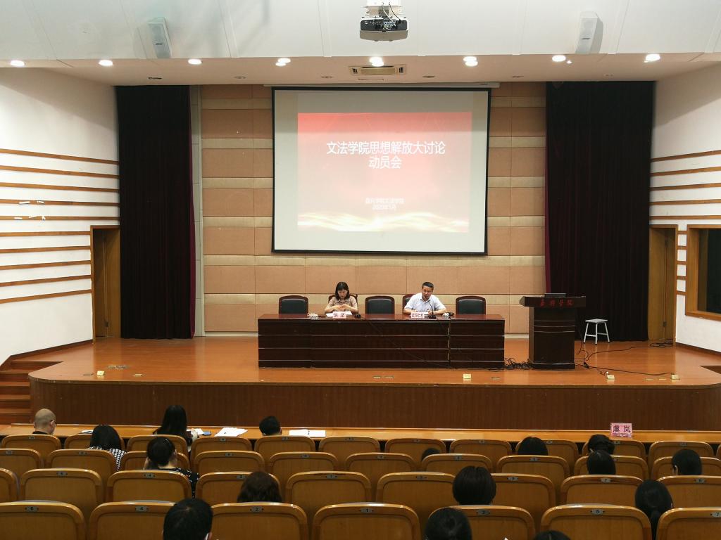 在梁林校区TCL报告厅召开了思想解放大讨论活动动员会,全体教职工参加会议。