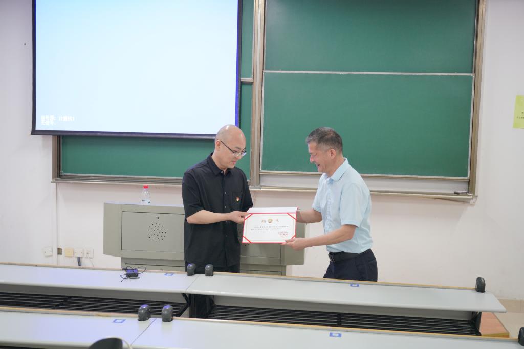 举办兼职教师聘任仪式。浙江子城律师事务所王惠明律师、浙江开发律师事务所郑诗贵律师受聘为学院兼职教师,学院副院长(主持工作)童建华为两位律师颁发了聘书。