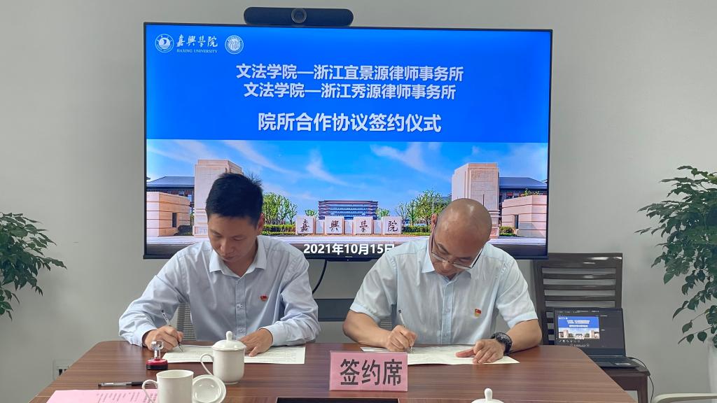 与浙江宜景源律师事务所、浙江秀源律师事务所院所合作协议签约仪式在厚德楼268会议室举行。啪啪啦