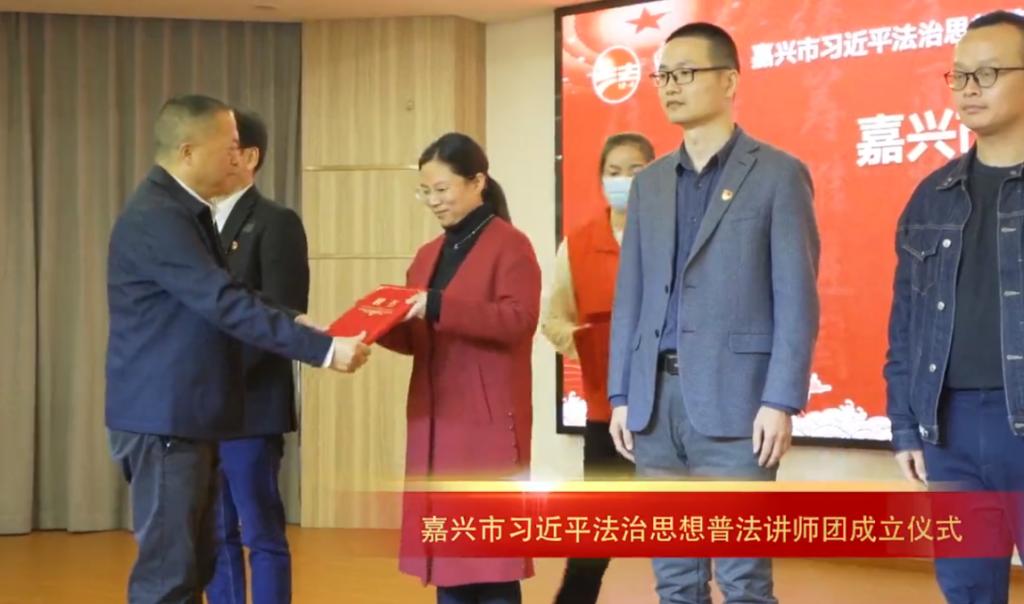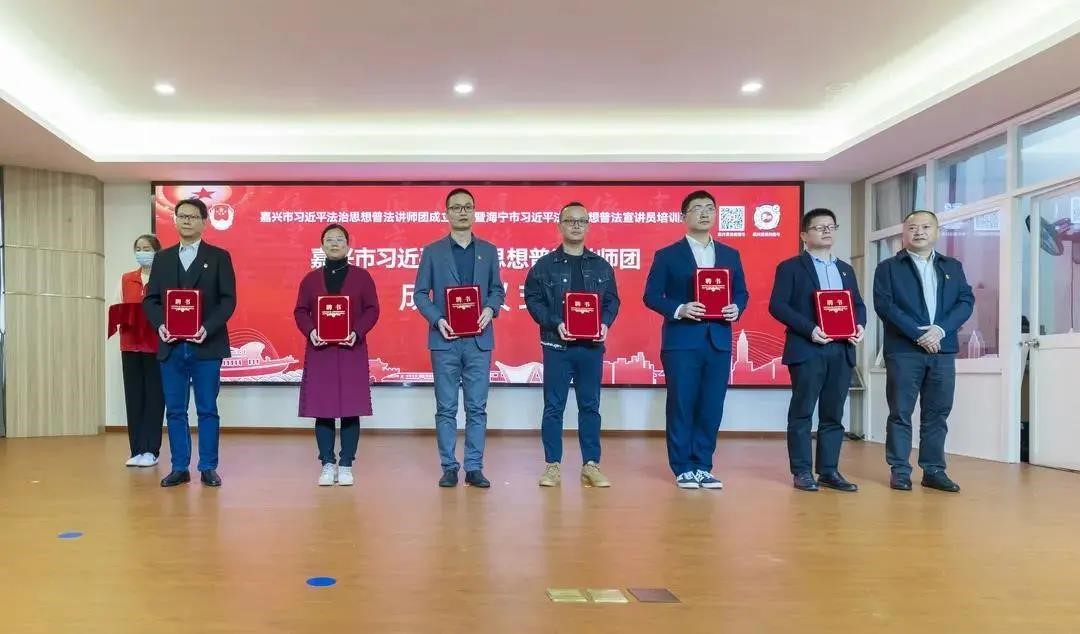 宗会霞副教授、李滇副教授和杨华国博士受聘为嘉兴市习近平法治思想普法讲师团成员。10月22日上午9点,嘉兴市习近平法治思想普法讲师团成立仪式在海宁市乡村振兴学院举行。习近平法治思想普法讲师团成员代表、第八批“全国民主法治示范村(社区)”代表、海宁市习近平法治思想宣讲团普法宣讲员代表等近100人参加活动。嘉兴市司法局党委书记、局长沈丁华,海宁市委常委汪国锋出席活动并讲话致辞。