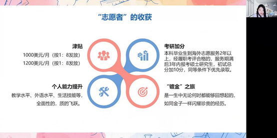 孔子学院志愿者宋芝菁和俞上分别从海外汉语教师志愿者项目的申请、考试、培训、外派工作、疫情防控、非洲生活等几个方面为同学们做了详细生动的介绍。