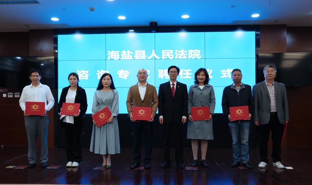 童建华副教授、宗会霞副教授、罗士俐副教授、唐永梅和魏佳老师受聘为海盐法院咨询专家,宗会霞、罗士俐、魏佳3位老师受聘为海盐法院青年法官导师。