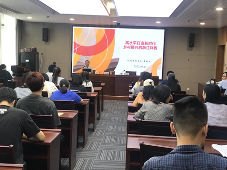 报告系统总结了“农村人口变化趋平”“乡-城两栖城镇化”“逆城镇化”等浙江乡村振兴的时代背景,全面梳理了浙江乡村振兴“环境先行、以城促乡、民主集中、数字赋能”的四大实践路径。报告内容深入浅出、全面详实,为与会师生进一步学习研究浙江乡村振兴实践开阔了视野,提供了理论指导。