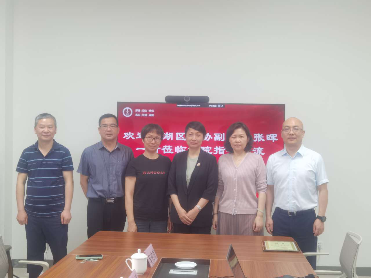 5月18日上午,南湖区政协副主席张晖一行来啪啪啦 交流指导,学院党委书记洪坚、副院长(主持工作)童建华出席座谈。