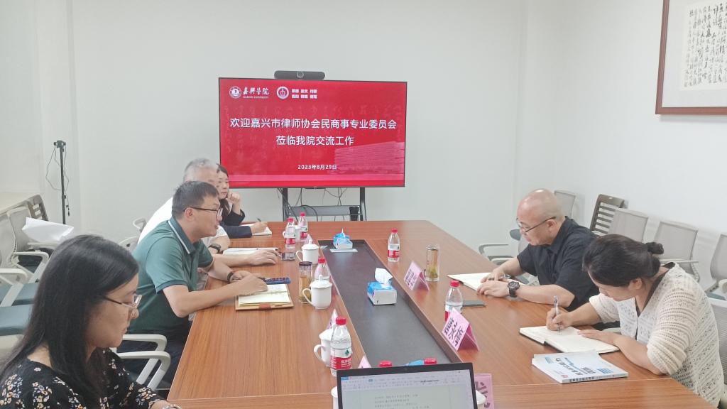 8月29日上午,嘉兴市律师协会副会长岳丛啸等一行6人来啪啪啦 交流工作。学院副院长(主持工作)童建华,法学系主任唐永梅,嘉兴市律协民商事专业委员会主任徐海明律师等参加座谈。