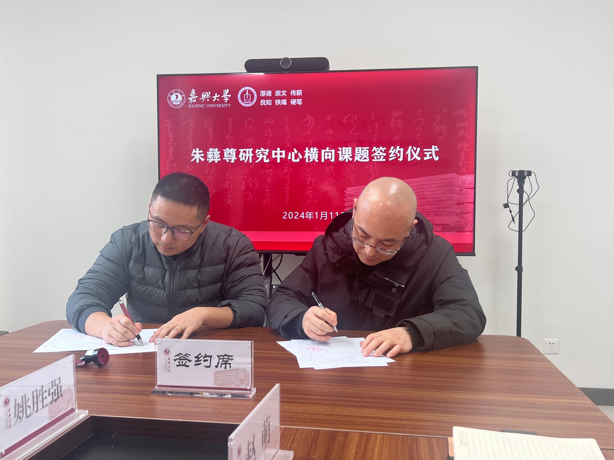 与秀洲区朱彝尊研究会横向课题签约仪式在厚德楼268会议室举行。中共嘉兴市秀洲区委宣传部副部长王文平、秀洲区委宣传部部务会议成员、区社科联专职副主席郑书飞、嘉兴市秀洲区王店镇党委委员朱琴燕、嘉兴市秀洲区朱彝尊研究会法定代表人朱佳飞等出席仪式。啪啪啦