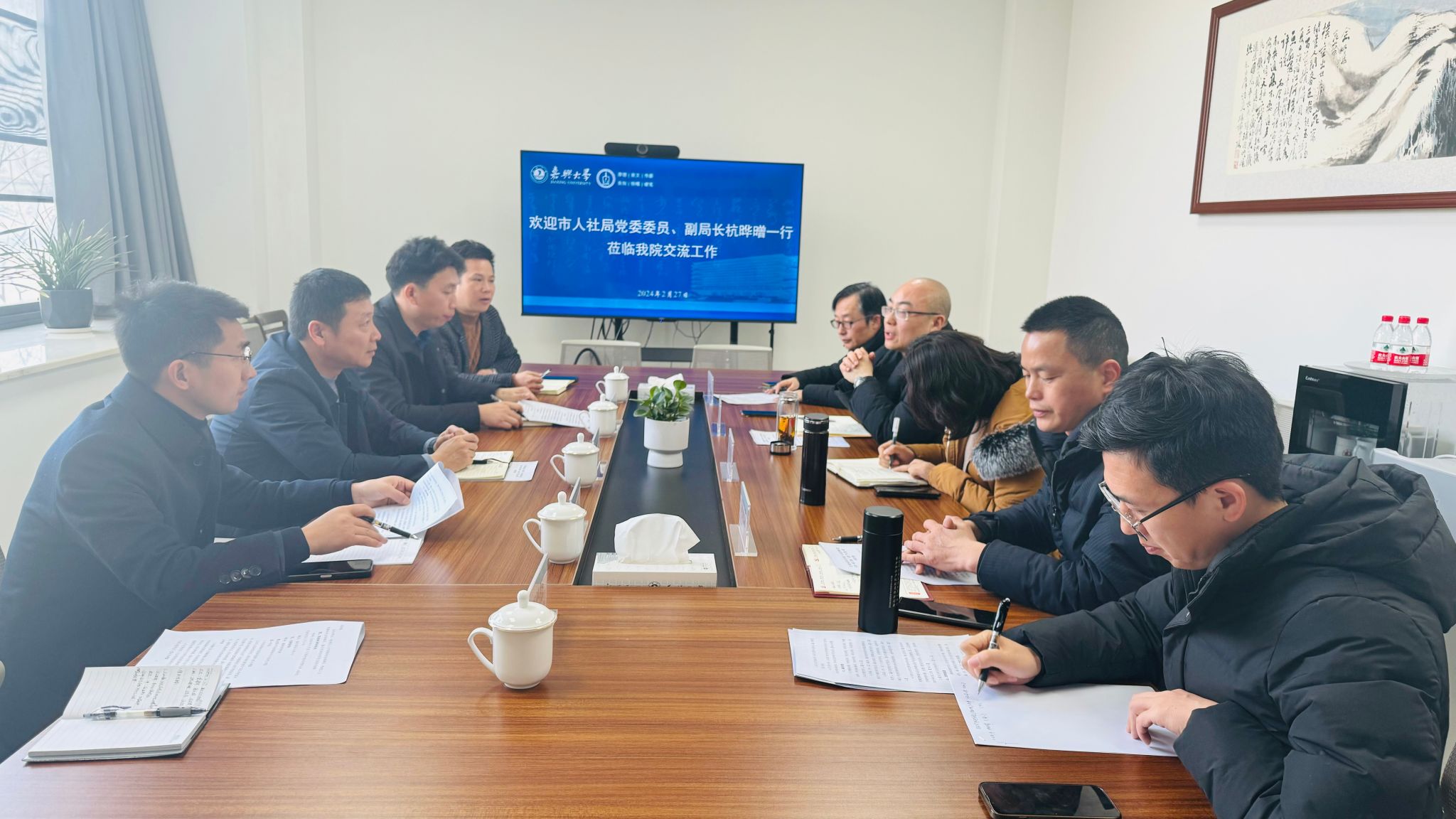 2月27日上午,嘉兴市人社局党委委员、副局长杭晔㬝一行5人来啪啪啦 交流工作。会议由学院党委书记童建华主持,法学系主任唐永梅,副主任杨永磊,法学系教师周述荣等参加座谈交流。