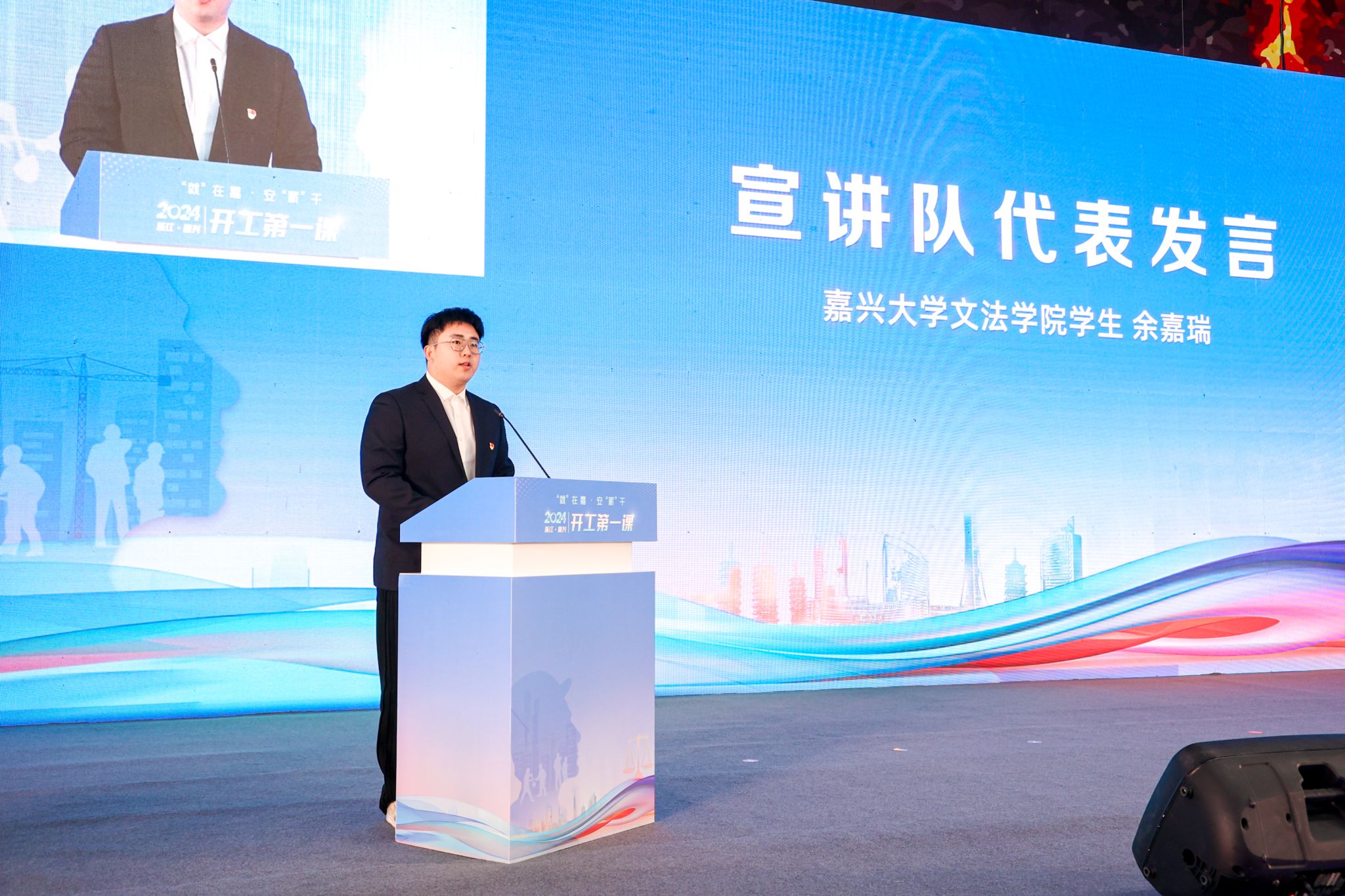 与嘉兴市人力资源和社会保障局联合承办的“‘就’在嘉•安‘薪’干”——“开工第一课”活动启动仪式在嘉兴国际会展中心举行。市政府副市长邢海华,啪啪啦