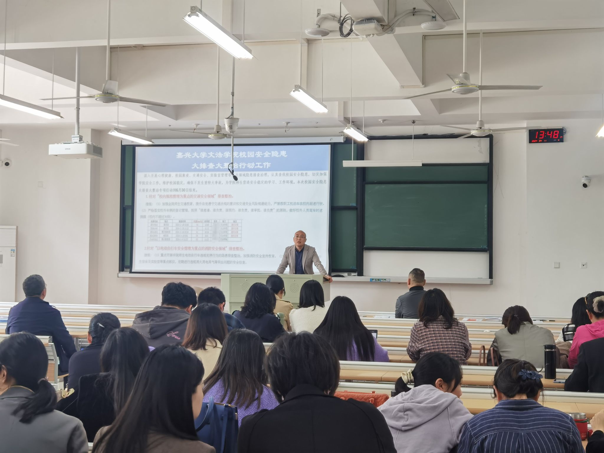在厚德楼122教室召开教职工大会暨安全隐患大排查大整治工作动员会。会议由学院党委书记童建华主持,学院全体教职工参加会议。