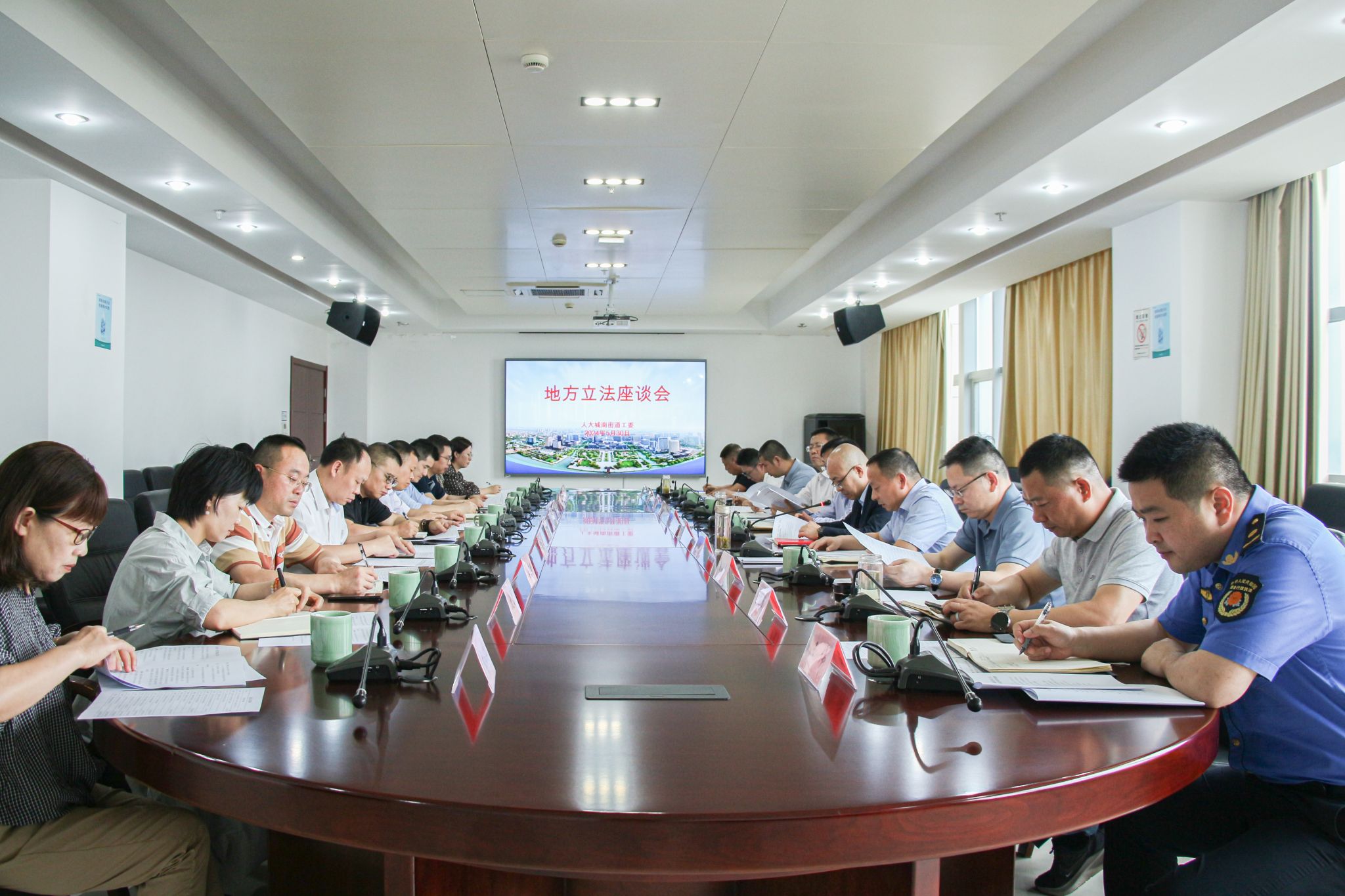 5月30日下午,南湖区人大常委会城南街道工委召开地方立法工作座谈会。啪啪啦 党委书记童建华、王镥权博士、国中兴博士受邀参加会议。