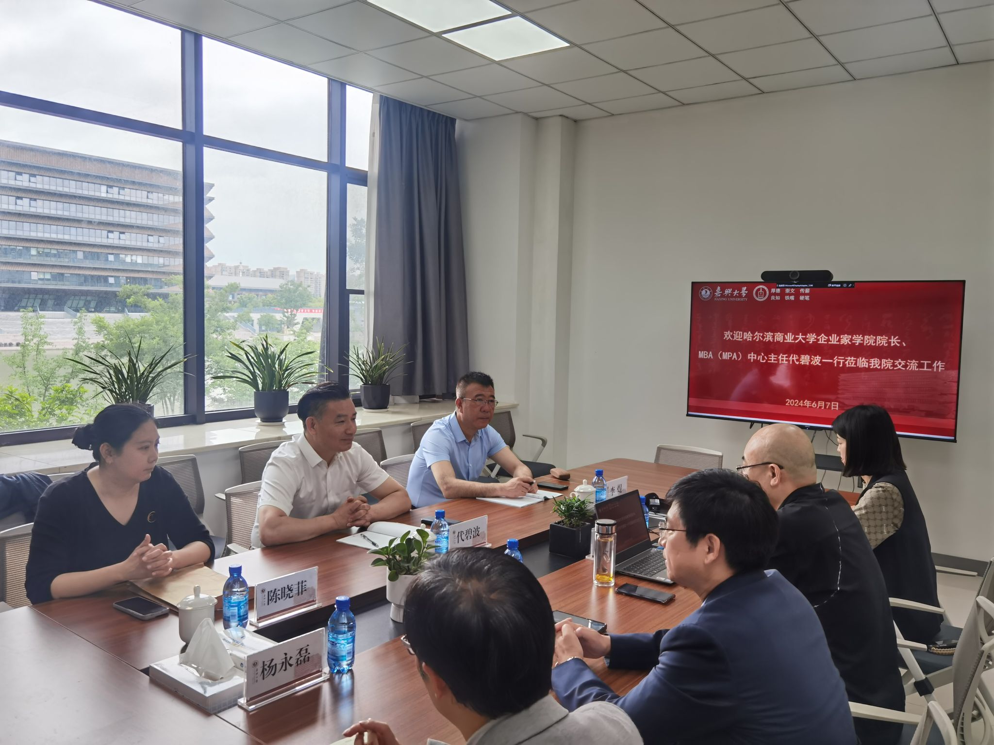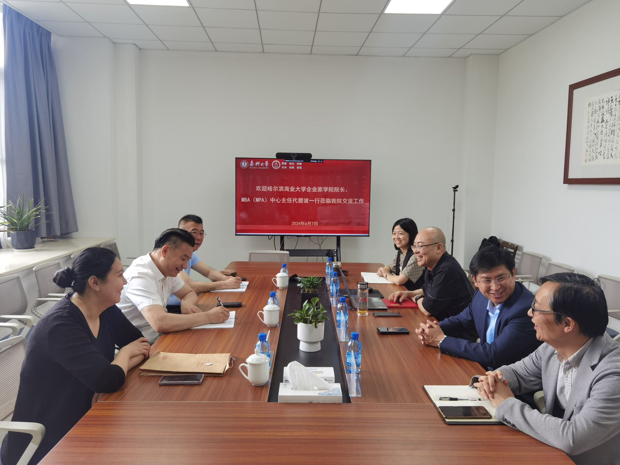 6月7日上午,哈尔滨商业大学企业家学院院长、MBA(MPA)中心主任代碧波一行3人来啪啪啦 交流工作。会议由学院党委书记童建华主持,学院党政领导班子成员参加座谈交流。