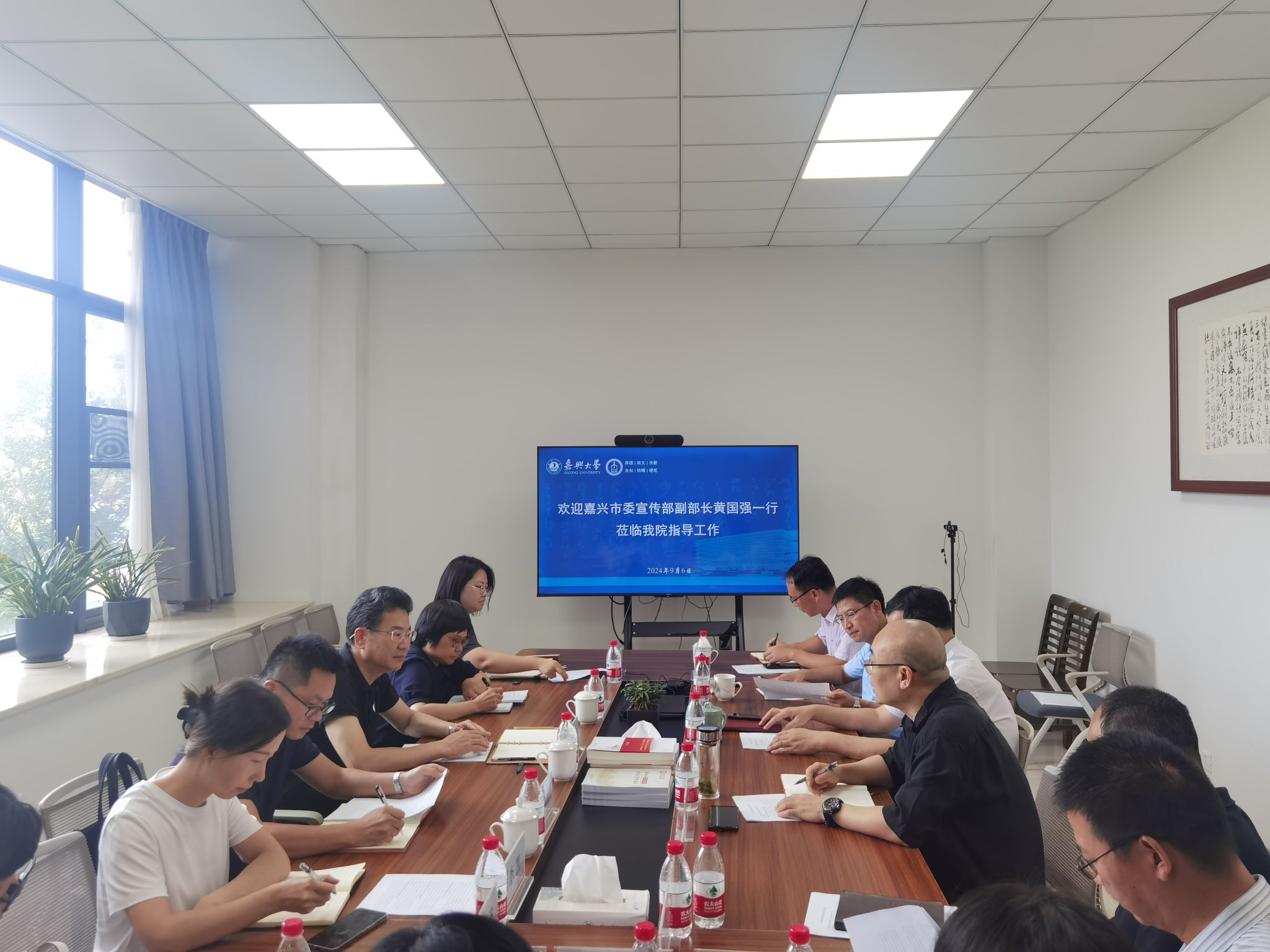 9月6日下午,嘉兴市委宣传部副部长、市社科联主席黄国强一行到访啪啪啦 调研交流。会议由学院党委书记童建华主持,啪啪啦 原党委副书记、中国历代绘画大系研究中心主任吴云达,啪啪啦 发展规划处副处长张猛,啪啪啦 学术院长石贤平及啪啪啦 部分骨干教师参加了座谈。