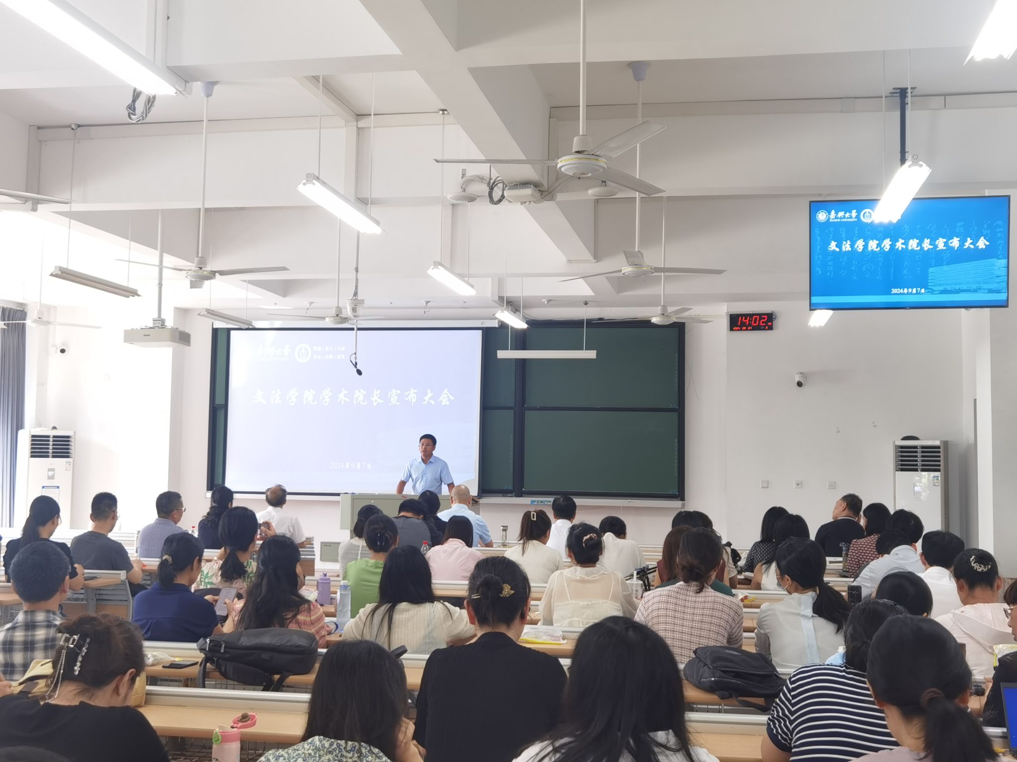 在厚德楼122召开学术院长宣布大会暨新学期教职工大会,校党委副书记钱方明,校党委副书记、党委组织部(统战部)部长、人才办主任陈立力出席会议,学院全体教职工参加会议。会议由学院党委书记童建华主持。校党委副书记、党委组织部(统战部)部长、人才办主任陈立力宣读了任命文件,任命石贤平同志担任啪啪啦