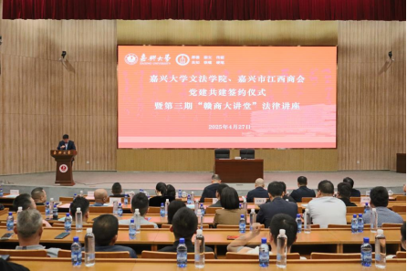 行政楼一楼报告厅举行党建共建签约仪式,并举办第三期“赣商大讲堂”法律讲座。活动旨在深化校企合作,推动党建与业务融合发展,为企业家与高校搭建法律知识交流平台。嘉兴市工商联非公有制经济服务中心主任黄克飞,嘉兴市江西商会党支部书记胡昌军,啪啪啦