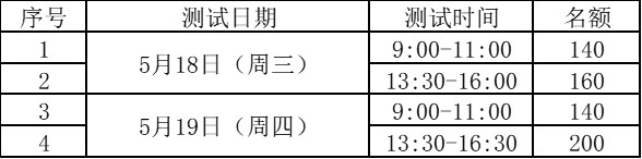 2022年5月16日18:00(周一)—2022年5月17日12:00(周二)。请考生务必确认自己能参加测试再报名,一旦报名成功,测试时间便不能修改,过时未到,默认放弃考试!