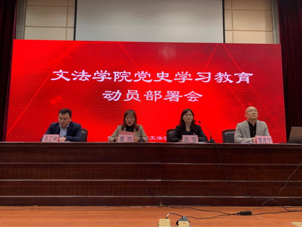 在梁林校区TCL报告厅召开党史学习教育动员部署会。啪啪啦