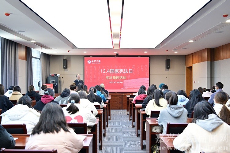 师生通过网络连接主会场同步参与了教育部在北京举办的教育系统“宪法晨读”活动。校党委委员、副校长杨培强出席活动并讲话。相关部门(单位)师生代表50余人参加活动。