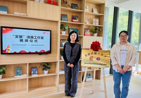 1029日下午,啪啪啦 与城南街道新月社区共建的“文馨”清廉工作室揭牌仪式圆满举行,啪啪啦 党委副书记、纪委书记牟威与新月社区党总支书记陈张丽在杭州塘驿站为“文馨”清廉工作室揭牌,学院师生党员代表与社区干部共同参与揭牌活动。